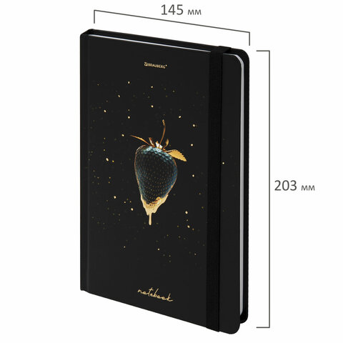 Блокнот с резинкой без линовки 96 л., А5 (145х203 мм), твердая обложка с фольгой, BRAUBERG, "Strawberry", 113735