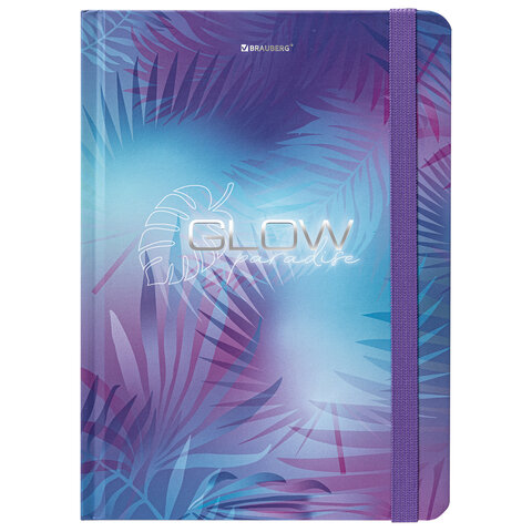 Блокнот с резинкой в клетку 96 л., А5, 145х203 мм, твердая обложка с фольгой, BRAUBERG, "Glow", 113729
