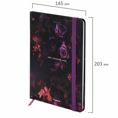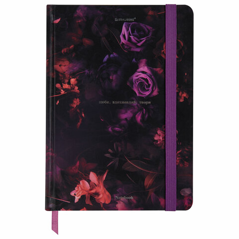 Блокнот с резинкой в клетку 96 л., А5 145х203 мм, твердая обложка с фольгой, BRAUBERG, "Цветы", 116327