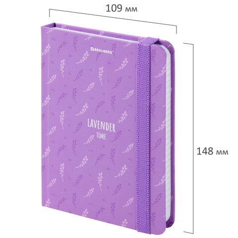 Блокнот с резинкой в клетку 96 л., МАЛЫЙ ФОРМАТ А6 (109х148 мм), твердая обложка, BRAUBERG, "Lavender", 113738