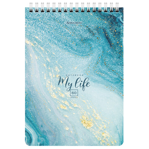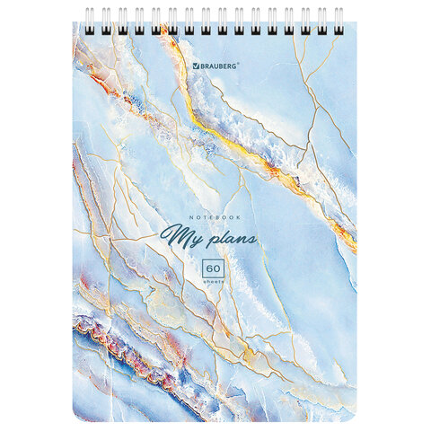 Блокнот А5 (146х206 мм), 60 л., гребень, картон, клетка, BRAUBERG, "Мрамор", 114360