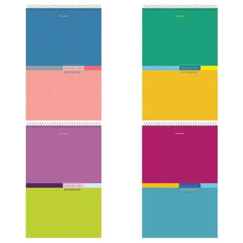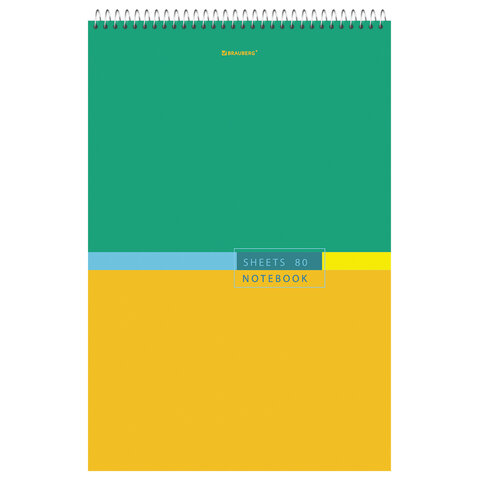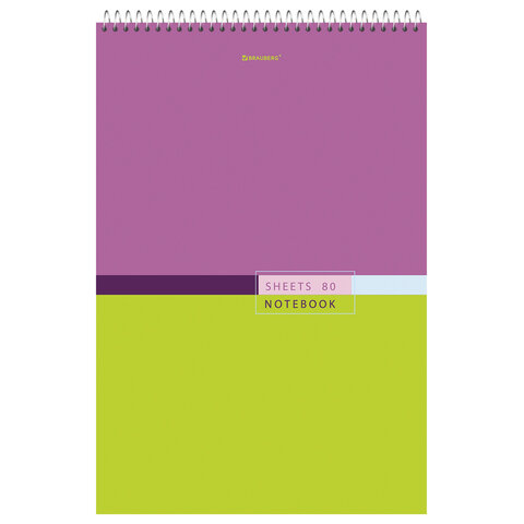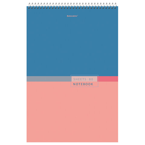 Блокнот БОЛЬШОЙ ФОРМАТ А4, 198х297 мм, 80 л., гребень, жесткая подложка, клетка, BRAUBERG, "Color", 114356