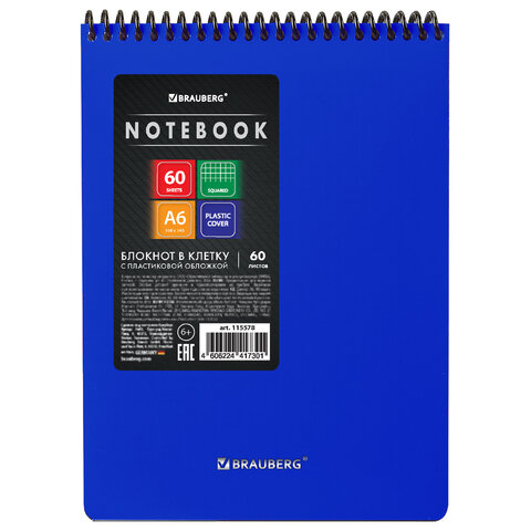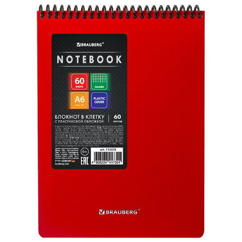 Блокнот МАЛОГО ФОРМАТА А6, 60 л., обложка пластик, клетка, BRAUBERG "Metropolis", АССОРТИ, 115578