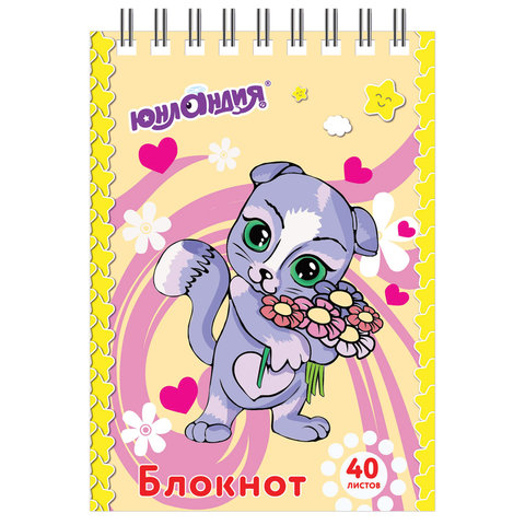 Блокнот МАЛЫЙ ФОРМАТ А7, 75х105 мм, 40 л., гребень, картон, клетка, ЮНЛАНДИЯ, "Мультяшки", 129860