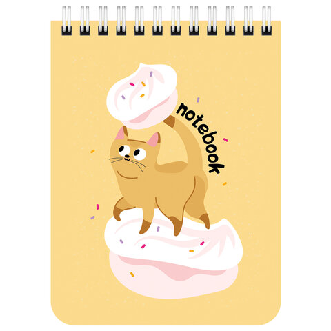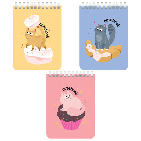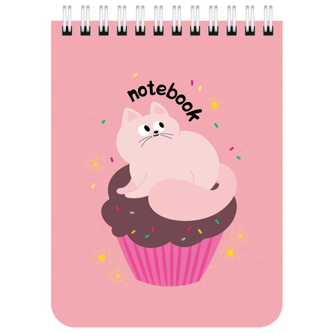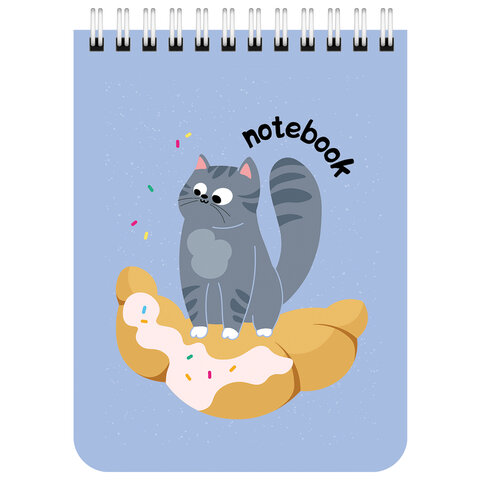 Блокнот МАЛЫЙ ФОРМАТ А6, 108х145 мм, 40 л., гребень, картон, клетка, BRAUBERG KIDS, "Котики", 114396