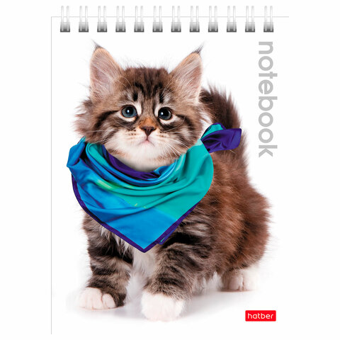 Блокнот МАЛЫЙ ФОРМАТ А6 110х145 мм, 40 л., гребень, лакированная обложка, клетка, HATBER, "Милые Котята", 004667, 40Б6B1гр