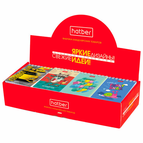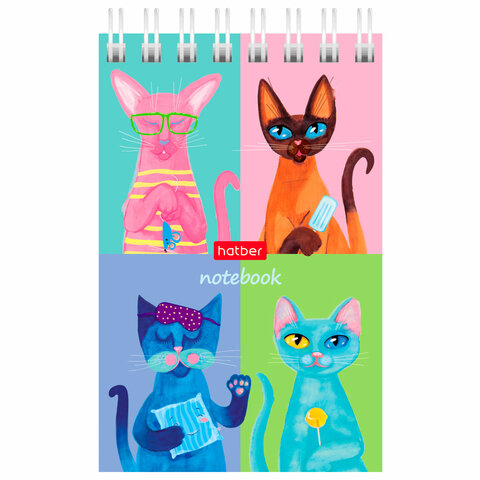 Блокнот МАЛЫЙ ФОРМАТ А7 65х100 мм, 40 л., гребень, картон, клетка, дисплей, HATBER, Ассорти, 031285, 40Б7B1гр