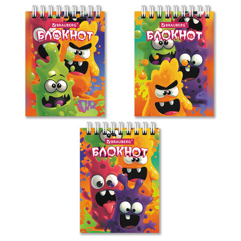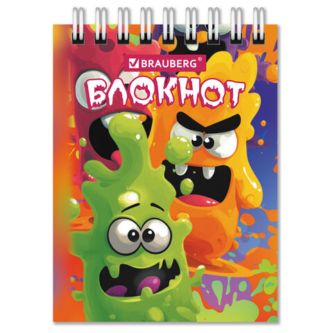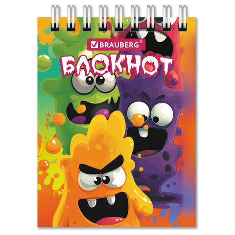 Блокнот МАЛЫЙ ФОРМАТ А7, 75х105 мм, 40 л., гребень, клетка, кросс-серия "МОНСТРИКИ", BRAUBERG, 116998