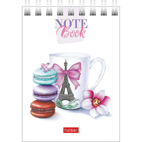 Блокнот МАЛЫЙ ФОРМАТ А7 75х105 мм, 60 л., гребень, картон, клетка, HATBER "Happy time", 066624, 60Б7В1гр