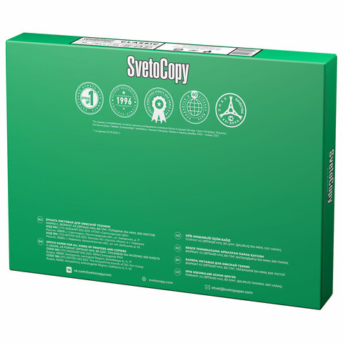 Бумага SVETOCOPY предназначена для повседневной работы в офисе. Подходит для всех классов копировальных аппаратов и принтеров.