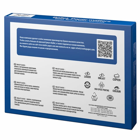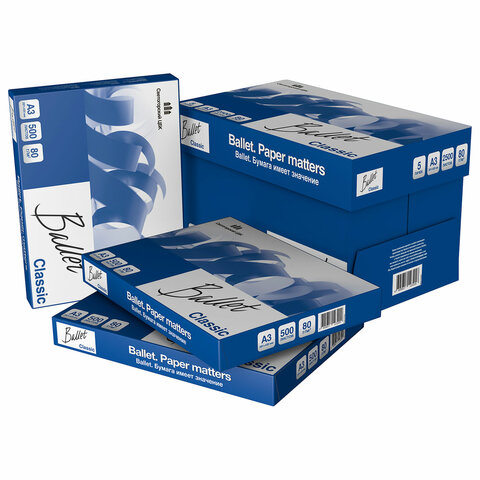 Бумага офисная БОЛЬШОГО ФОРМАТА (297х420), А3, 80 г/м2, 500 л., марка В, BALLET CLASSIC, 153% (CIE)