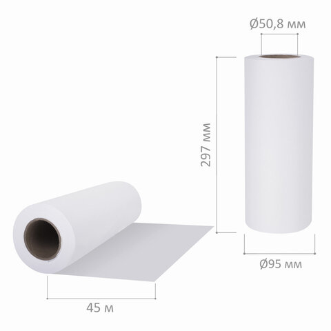 Бумага широкоформатная рулон для плоттера 297 мм х 45 м х втулка 50,8 мм, 80 г/м2, белизна CIE 146%, BRAUBERG, 111811