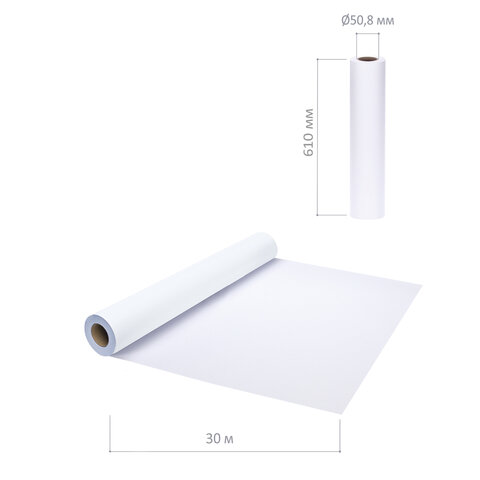 Бумага широкоформатная рулон для плоттера 610 мм х 30 м х втулка 50,8 мм, 160 г/м2, белизна CIE 146%, BRAUBERG, 110623