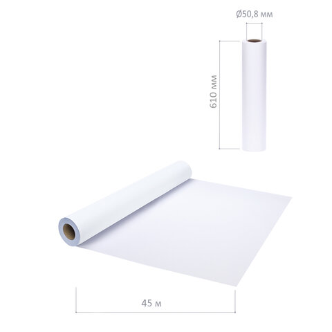 Бумага широкоформатная рулон для плоттера, 610 мм х 45 м х втулка 50,8 мм, 90 г/м2, белизна CIE 146%, BRAUBERG, 110451