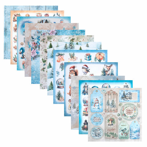 Бумага для скрапбукинга 30х30 см "Новогодний дизайн", двусторонняя, 12 листов, 180 г/м2, ОСТРОВ СОКРОВИЩ, 665438