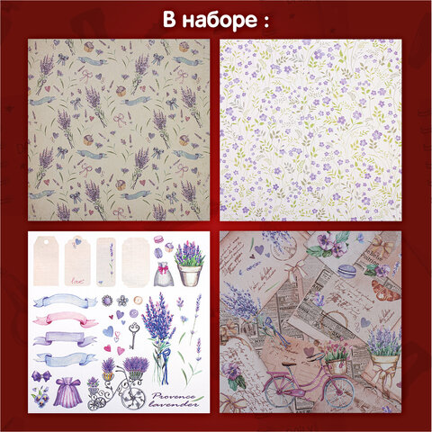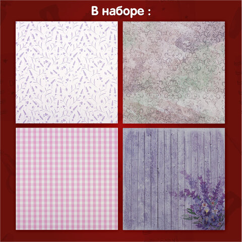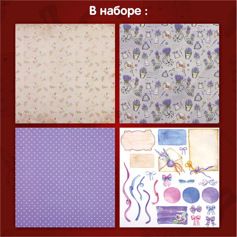 Бумага для скрапбукинга 30х30 см "Прованс", двусторонняя, 12 листов, 12 дизайнов, 180 г/м2, ОСТРОВ СОКРОВИЩ, 662765