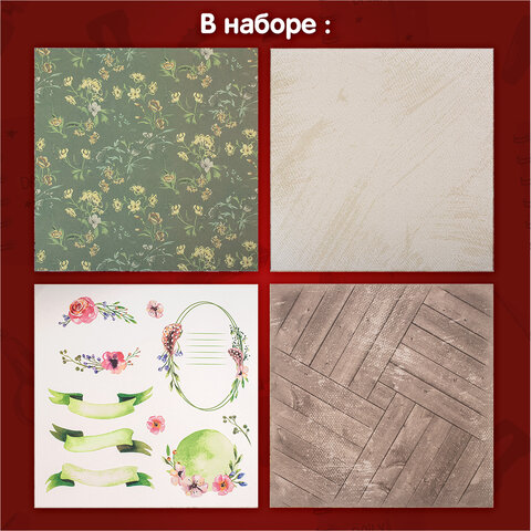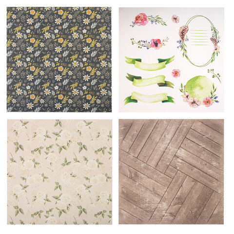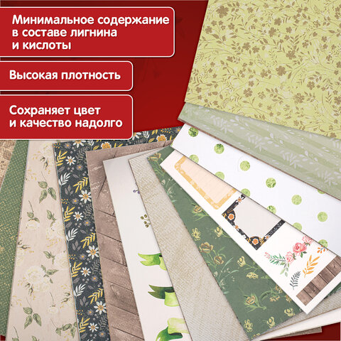 Бумага для скрапбукинга 30х30 см "Рустик", двусторонняя, 12 листов, 12 дизайнов, 180 г/м2, ОСТРОВ СОКРОВИЩ, 662770