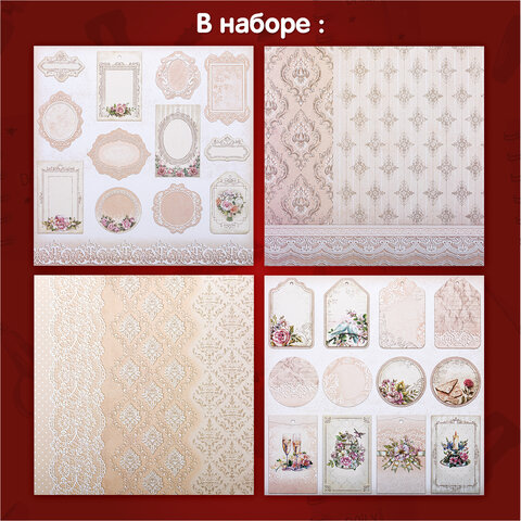 Бумага для скрапбукинга 30х30 см "Свадебный", двусторонняя, 12 листов, 180 г/м2, ОСТРОВ СОКРОВИЩ, 665435