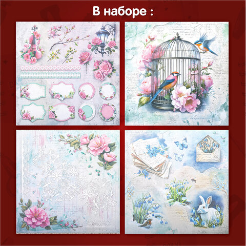 Бумага для скрапбукинга 30х30 см "Весна", двусторонняя, 12 листов, 180 г/м2, ОСТРОВ СОКРОВИЩ, 665439