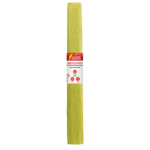 Бумага гофрированная/креповая, 110 г/м2, 50х250 см, желто-зеленая, в рулоне, ОСТРОВ СОКРОВИЩ, 112538