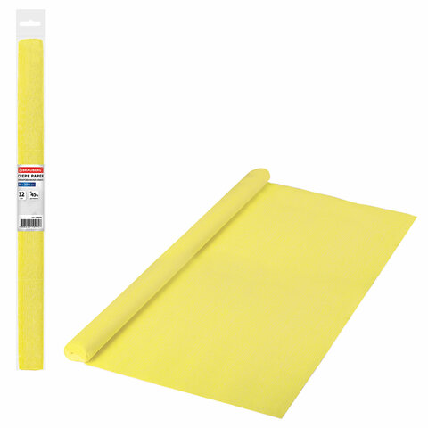 Бумага гофрированная/креповая, 32 г/м2, 50х250 см, желтая, в рулоне, BRAUBERG, 126529