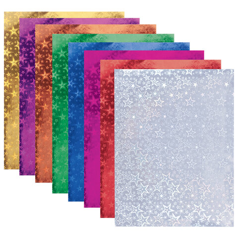 Цветная бумага А4 ГОЛОГРАФИЧЕСКАЯ, 8 листов 8 цветов, BRAUBERG, "ЗВЕЗДЫ", 124719