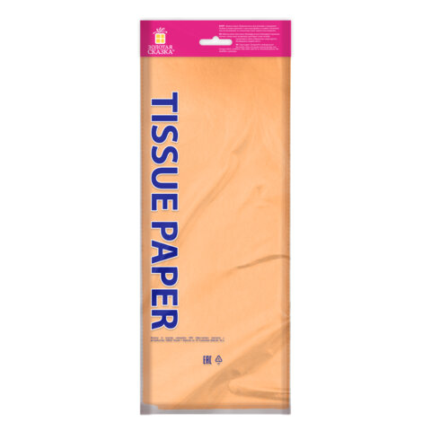 Цветная бумага ТИШЬЮ 17 г/м2, 50х66 см, 10 листов, персиковый цвет, ЗОЛОТАЯ СКАЗКА, 116481
