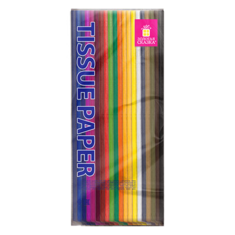 Цветная бумага ТИШЬЮ 17 г/м2, 50х66 см, 100 листов, 20 цветов, интенсив ассорти, ЗОЛОТАЯ СКАЗКА, 116496