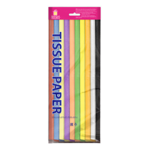 Цветная бумага ТИШЬЮ 17 г/м2, 50х66 см, 20 листов, 10 цветов, пастель ассорти, ЗОЛОТАЯ СКАЗКА, 116493