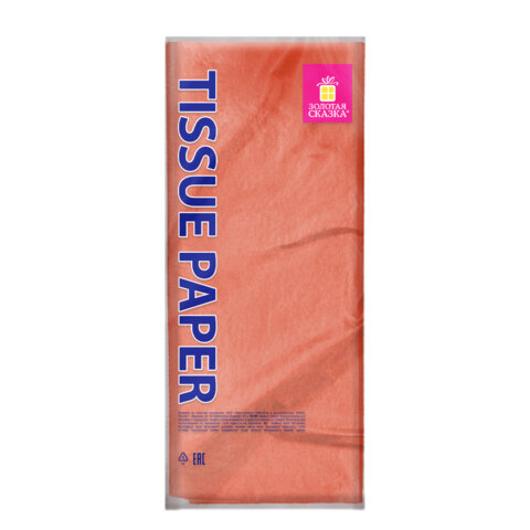 Цветная бумага ТИШЬЮ 17 г/м2, 50х66 см, 50 листов, коралловый цвет, ЗОЛОТАЯ СКАЗКА, 116485
