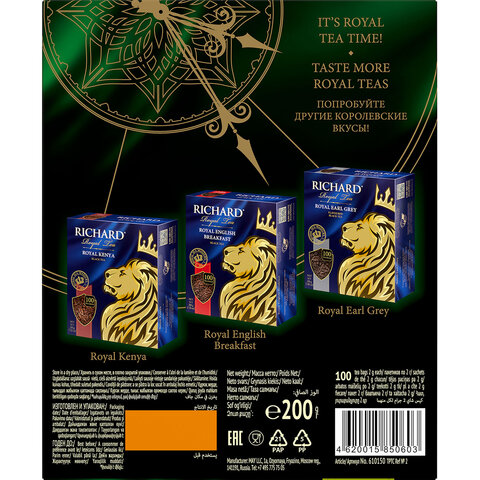 Чай RICHARD (Ричард) "Royal Green" - китайский зеленый чай в пакетиках. Изумрудные чайные листья, столь почитаемые китайскими императорами за мягкий сбалансированный вкус, восстановят внутреннюю гармонию и придадут сил.