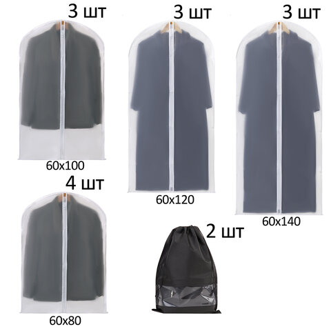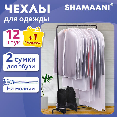 Чехлы для хранения одежды на молнии, КОМПЛЕКТ 12 шт. + 1 чехол + 2 сумки для обуви в подарок, SHAMAANI (ШАМААНИ), 609595
