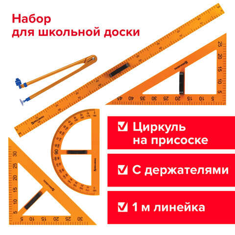 Набор чертежный BRAUBERG предназначен для выполнения чертежных работ на классных досках.