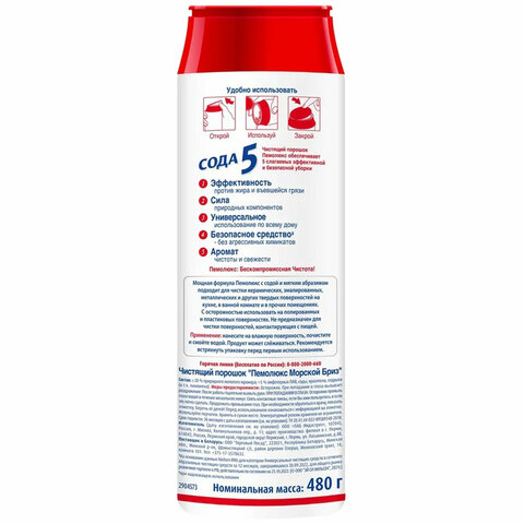 Чистящее средство 480 г, ПЕМОЛЮКС Сода-5/7 "Морской бриз", порошок