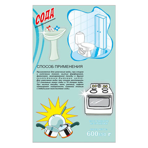 Сода кальцинированная (натрий углекислый) применяется для мытья фарфоровой, фаянсовой, эмалированной, керамической посуды, чистки кафеля, раковин, ванн, линолеума, стирки и кипячения, замачивания хлопчатобумажных, льняных тканей, смягчения воды и пр.