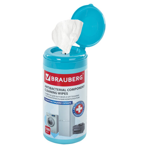 Салфетки АНТИБАКТЕРИАЛЬНЫЕ ДЛЯ БЫТОВОЙ И ОРГТЕХНИКИ, ПЛОТНЫЕ, BRAUBERG, 100 шт., 513477