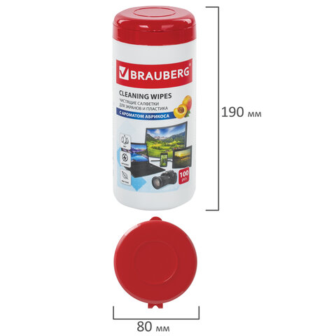 Салфетки для экранов всех типов и пластика BRAUBERG с ароматом АБРИКОС, туба 100 шт., влажные, 513321