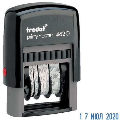 Датер-мини, месяц БУКВАМИ, оттиск 22х4 мм, синий, TRODAT 4820 P2, корпус черный, подушка, 73930