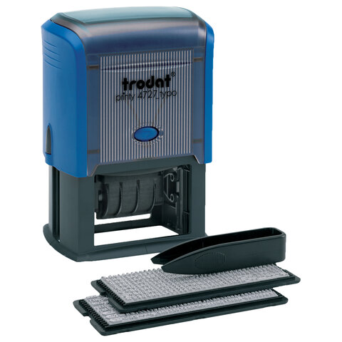 Датер самонаборный, месяц ЦИФРАМИ, ДЛЯ БАНКА 6 строк + дата, оттиск 60х40 мм, синий, TRODAT 4727 P4, КАССЫ, 188551