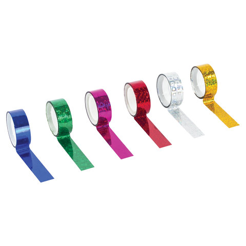Клейкие ленты 15 мм х 5 м, декоративные голографические, ОСТРОВ СОКРОВИЩ, комплект 6 шт., ассорти №1, 227274