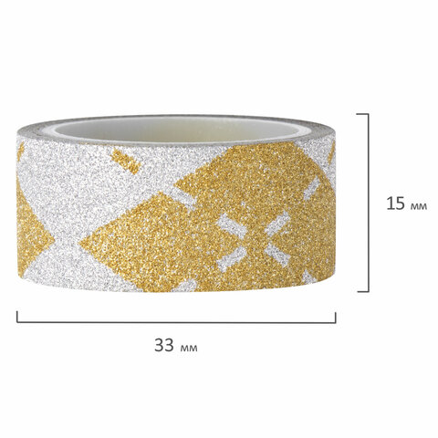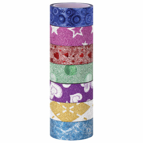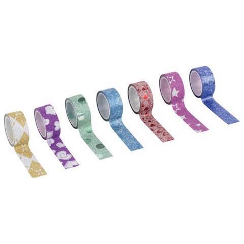 Клейкие ленты полимерные для декора с блестками "УЗОРЫ", 15 мм х 3 м, 7 цветов, ОСТРОВ СОКРОВИЩ, 661718