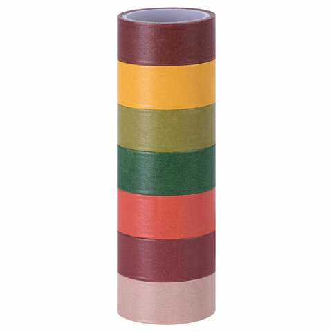 Клейкие WASHI-ленты для декора "ИНТЕНСИВ", 7 теплых цветов, 15 мм х 3 м, рисовая бумага, ОСТРОВ СОКРОВИЩ, 661698