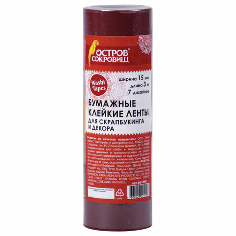 Бумажные клейкие ленты ОСТРОВ СОКРОВИЩ подходят для использования в скрапбукинге, декорирования поделок, открыток, оформления подарков. Декоративные ленты легко приклеиваются и надежно фиксируются на любой поверхности, придавая изделиям оригинальный вид.