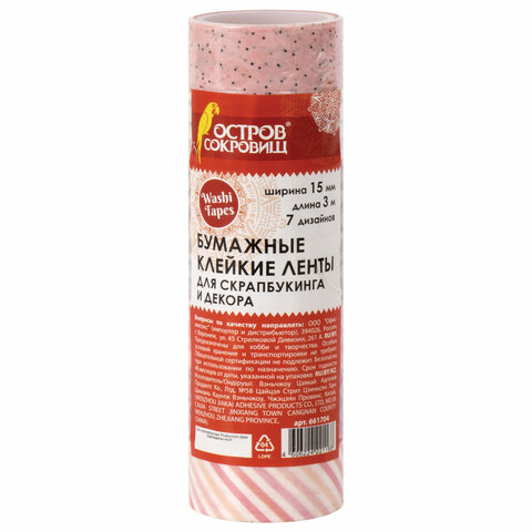Бумажные клейкие ленты ОСТРОВ СОКРОВИЩ подходят для использования в скрапбукинге, декорирования поделок, открыток, оформления подарков. Декоративные ленты легко приклеиваются и надежно фиксируются на любой поверхности, придавая изделиям оригинальный вид.