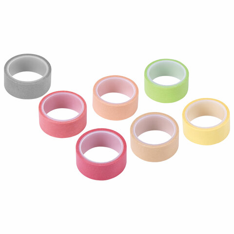 Клейкие WASHI-ленты для декора "ПАСТЕЛЬ", 7 теплых цветов, 15 мм х 3 м, рисовая бумага, ОСТРОВ СОКРОВИЩ, 661700