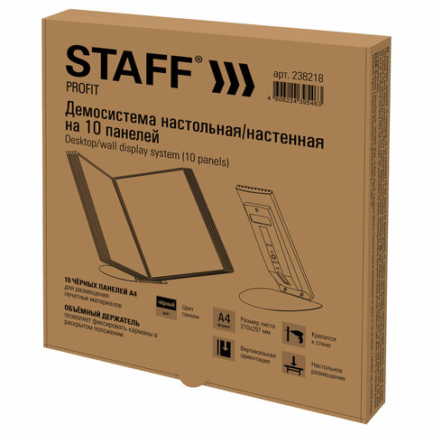 Демосистема настольная/настенная на 10 панелей, с 10 черными панелями А4, STAFF "Profit", 238218