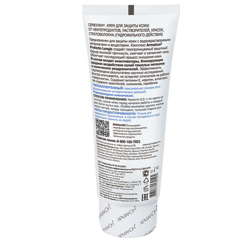 Крем защитный, 100 мл, АРМАКОН "СЕРВОЛИН", гидрофильный, от нефтепродуктов, смазочно-охлаждающих жидкостей, красок, 1197