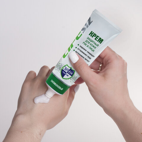 Крем для защиты рук от вредных воздействий внешних факторов и среды - нефтепродуктов, смазочных материалов, различных химических смесей, масел, растворов, бытовой химии. Также крем защищает руки от обветривания, обморожения, влияния сырости и влаги.