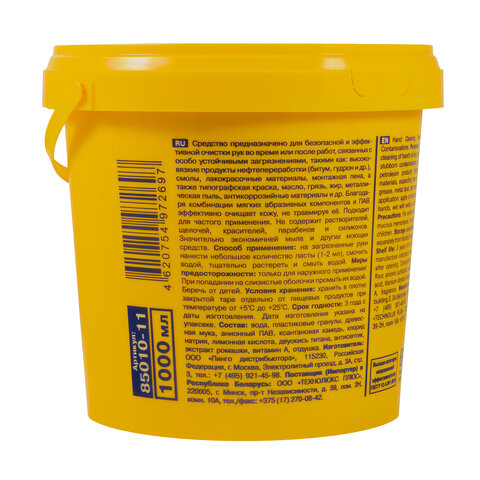 Паста ЧИСТАЯ ЗВЕЗДА – нейтральное средство для эффективной очистки кожи рук от масла, смазок, монтажной пены, типографской краски, графита, плиточного клея, битума, сажи, антикоррозийных материалов, производственной пыли, грязи и других загрязнений.