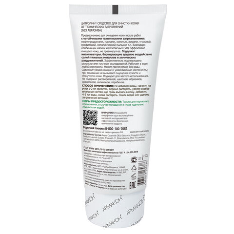 Средство очищающее 200 мл, АРМАКОН "ЦИТРОЛИН", от технических загрязнений, без абразива, 1206